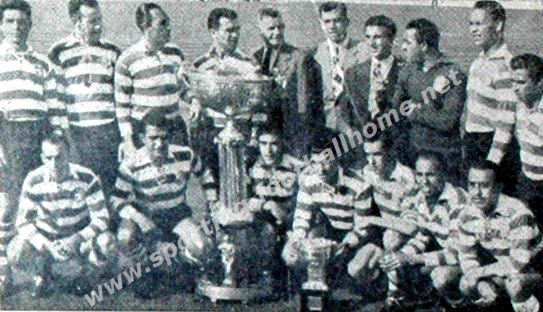 Os Campeões Nacionais festejam o seu 6º Título posando com a Taça de Campeão da F.P.F. e com a Taça Monumental de 'O Século'