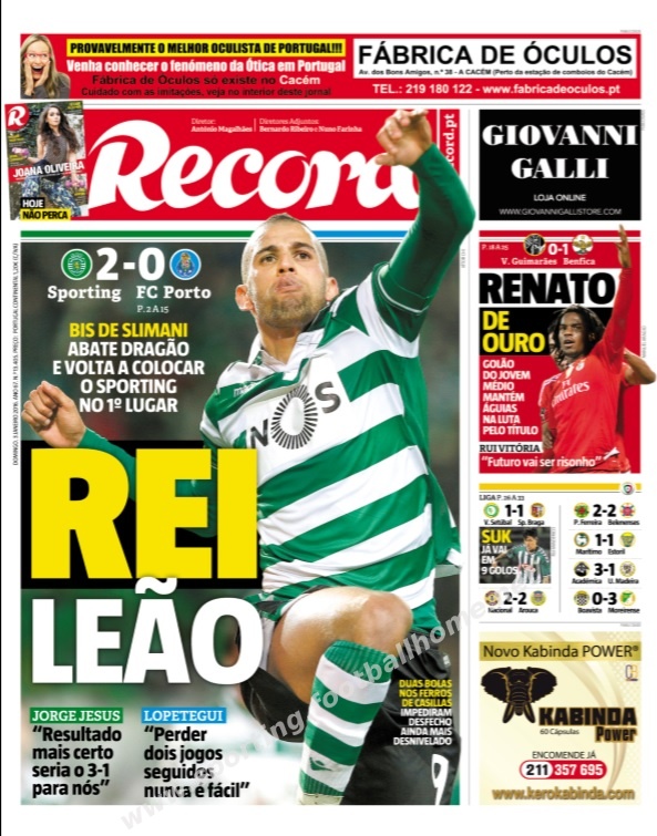 Vitória sobre o Porto (2-0) que colocou o Sporting no topo da classificação à 15ª jornada.