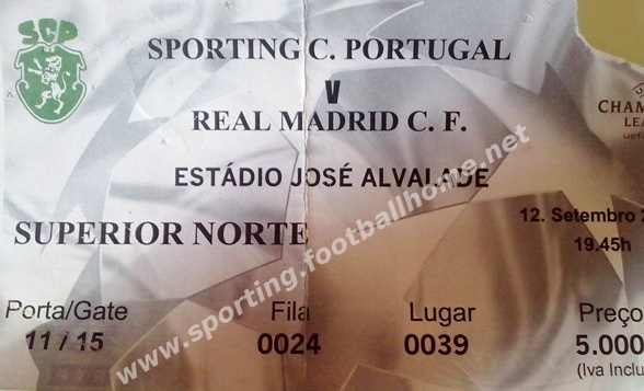 Sporting-2 Real Madrid-2 (Sá Pinto 38' e André Cruz 41')