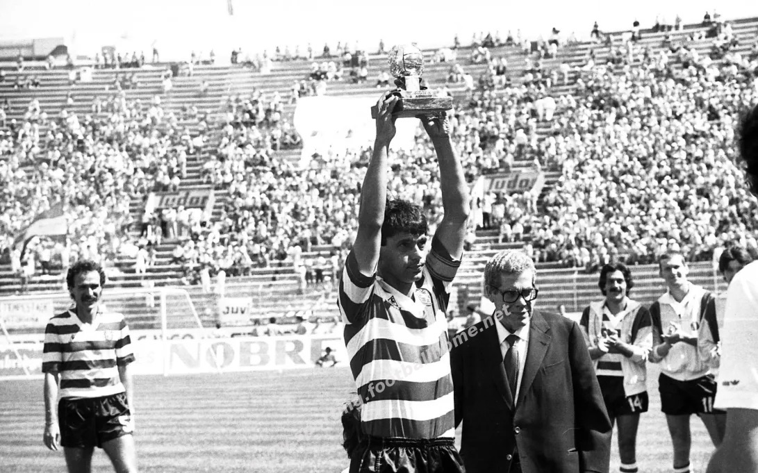 Manuel Fernandes recebe a 'Bola de Prata', troféu referente ao melhor marcador do Campeonato 85/86.