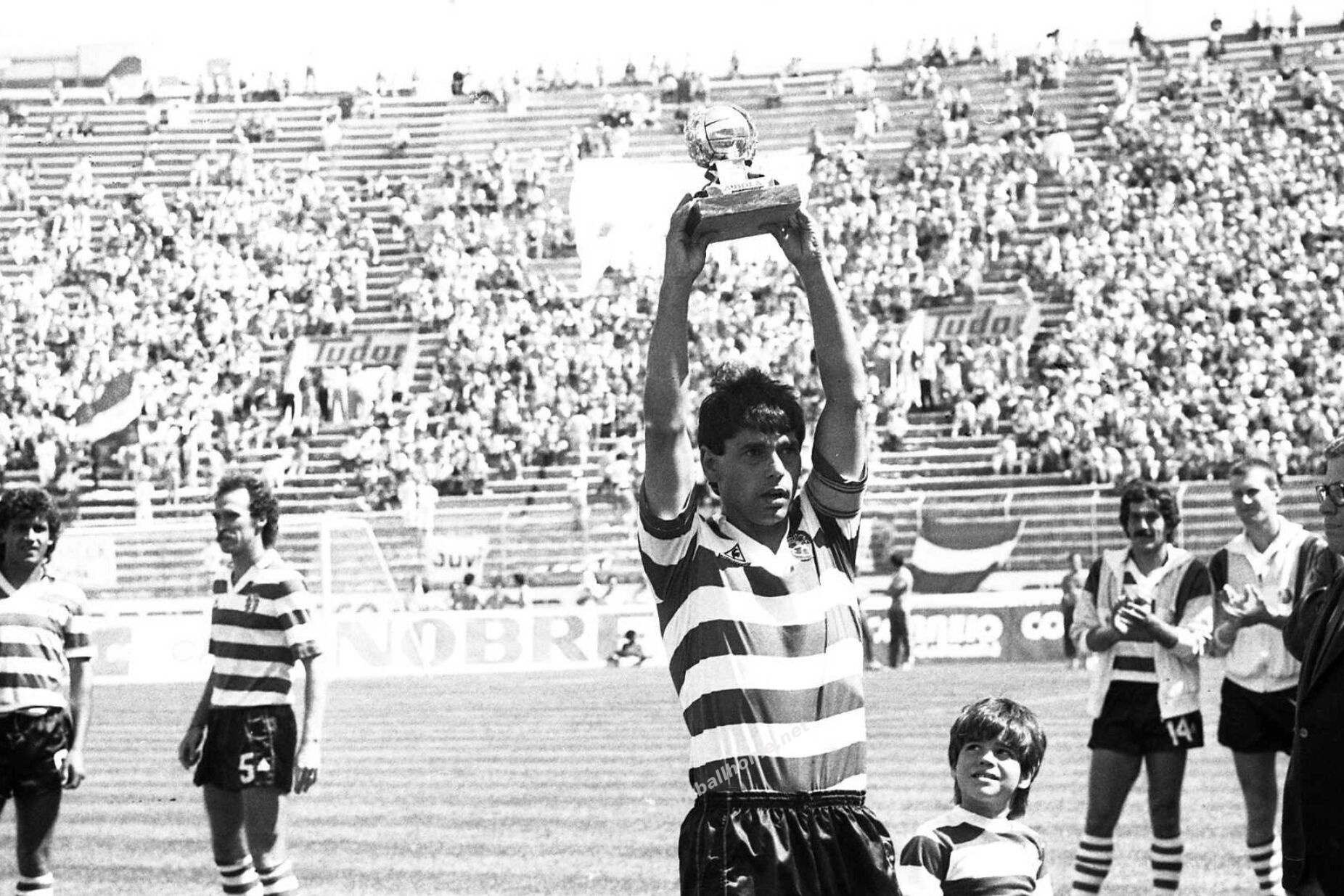 Manuel Fernandes recebe a 'Bola de Prata', troféu referente ao melhor marcador do Campeonato 85/86.