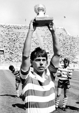 Manuel Fernandes recebe a 'Bola de Prata', troféu referente ao melhor marcador do Campeonato 85/86.