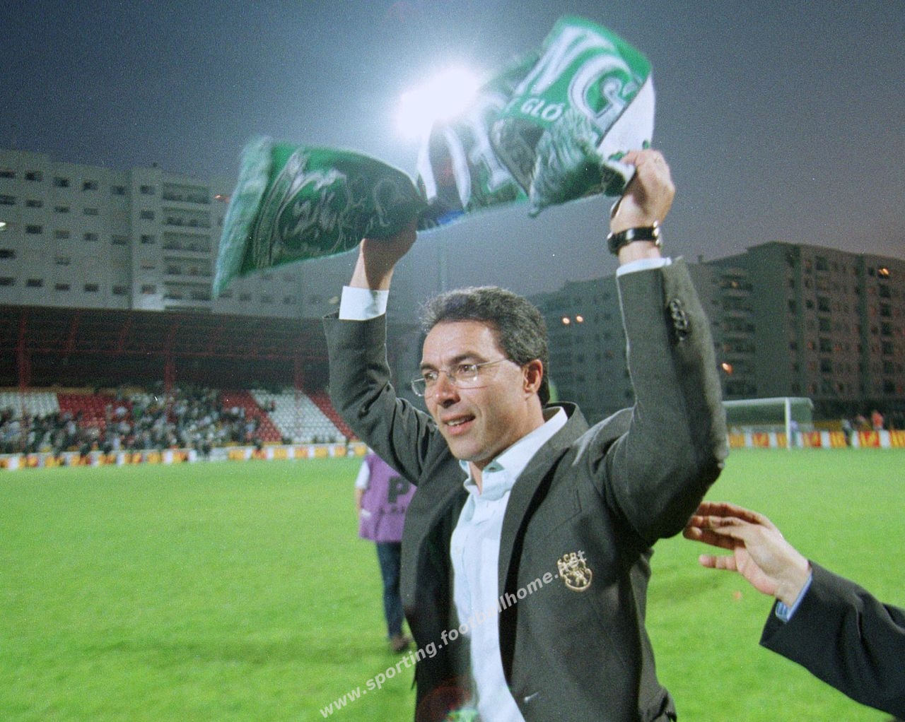 No final do jogo que 'matou o borrego', jogadores e adeptos leoninos fizeram a festa merecida e Inácio juntou o título de Campeão como treinador à de jogador.