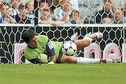 A efectuar a sua especialidade... defender penaltys.