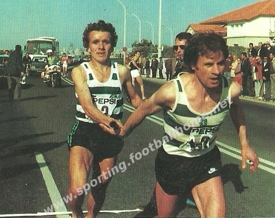 Joaquim Pinheiro entrega a estafeta a Carlos Lopes.