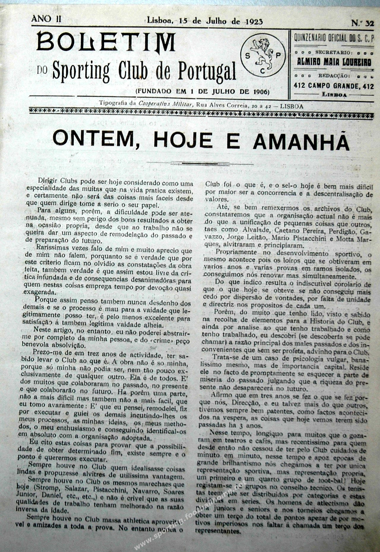 Boletim do Sporting de Julho de 1923.