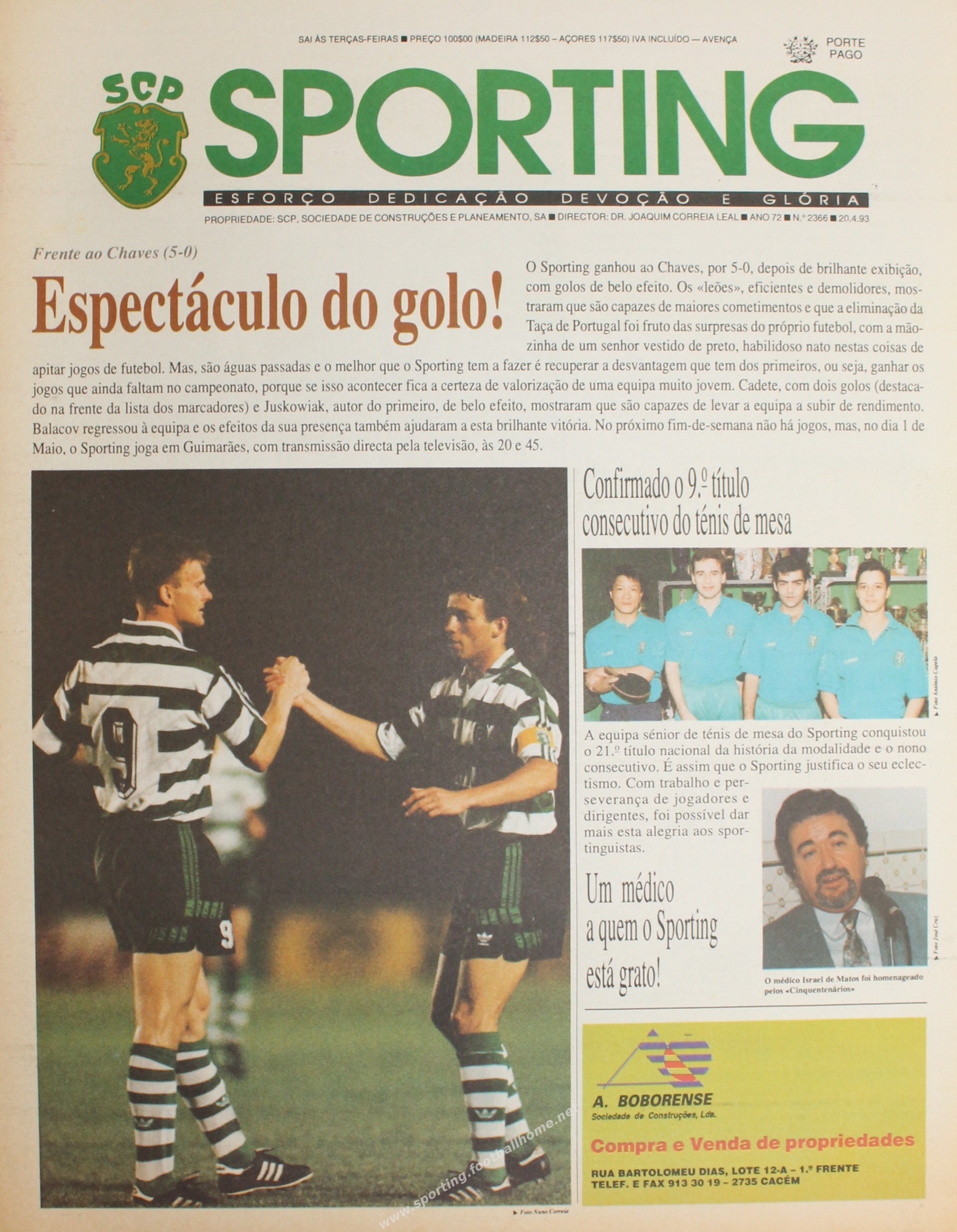 Goleada por 5-0 em Torres Novas, casa emprestada, na recepção ao Chaves.