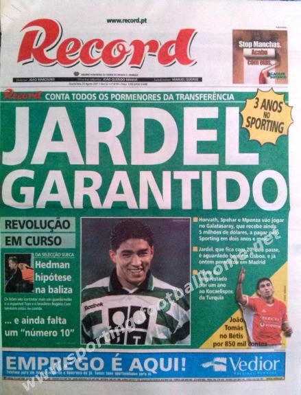 Movimentações de mercado: Enquanto chegava Jardel da Turquia, Mpenza, Horvath e Spehar seguiam em sentido inverso rumo ao Galatasaray. Ayew era emprestado ao Kocaelispor.