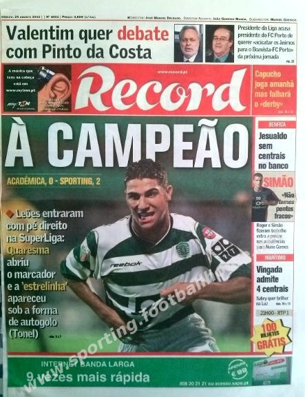 Arranque no Campeonato 2002-03 com vitória sobre a Académica (2-0) na Figueira da Foz.