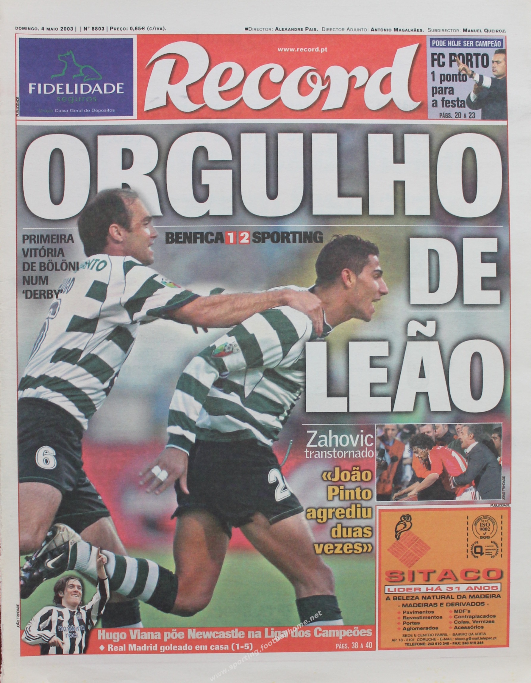 Num derby disputado no Estádio do Jamor (devido à construção do novo Estádio da Luz), Quaresma e João Pinto marcaram na vitoria leonina (2-1) para o Campeonato.