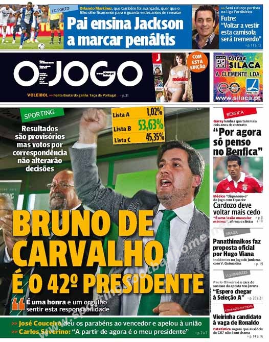 Bruno de Carvalho eleito o 42º Presidente do Sporting.
