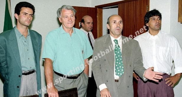 Bobby Robson, no dia da sua apresentação com o Presidente Sousa Cintra e com os seus adjuntos: o Grande Manuel Fernandes e um tal de... José Mourinho.