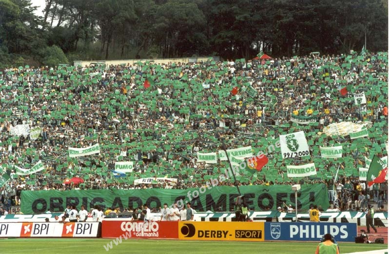 Adeptos agradecem aos jogadores o título de Campeões 1999/2000.