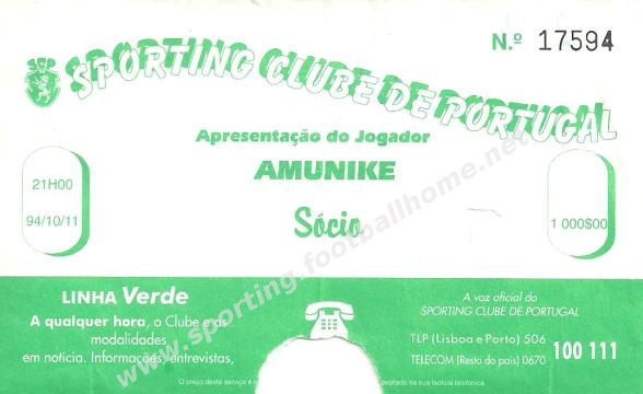 11-10-1994 - Jogo de apresentação de Amunike