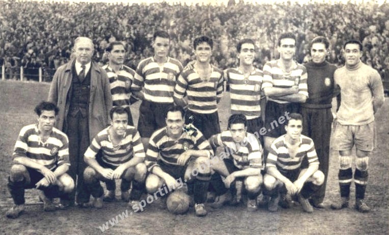 Azevedo; Álvaro Cardoso e Manuel Marques; Nogueira, Barrosa e Veríssimo; João Cruz, Canário, Peyroteo, António Marques e Albano.