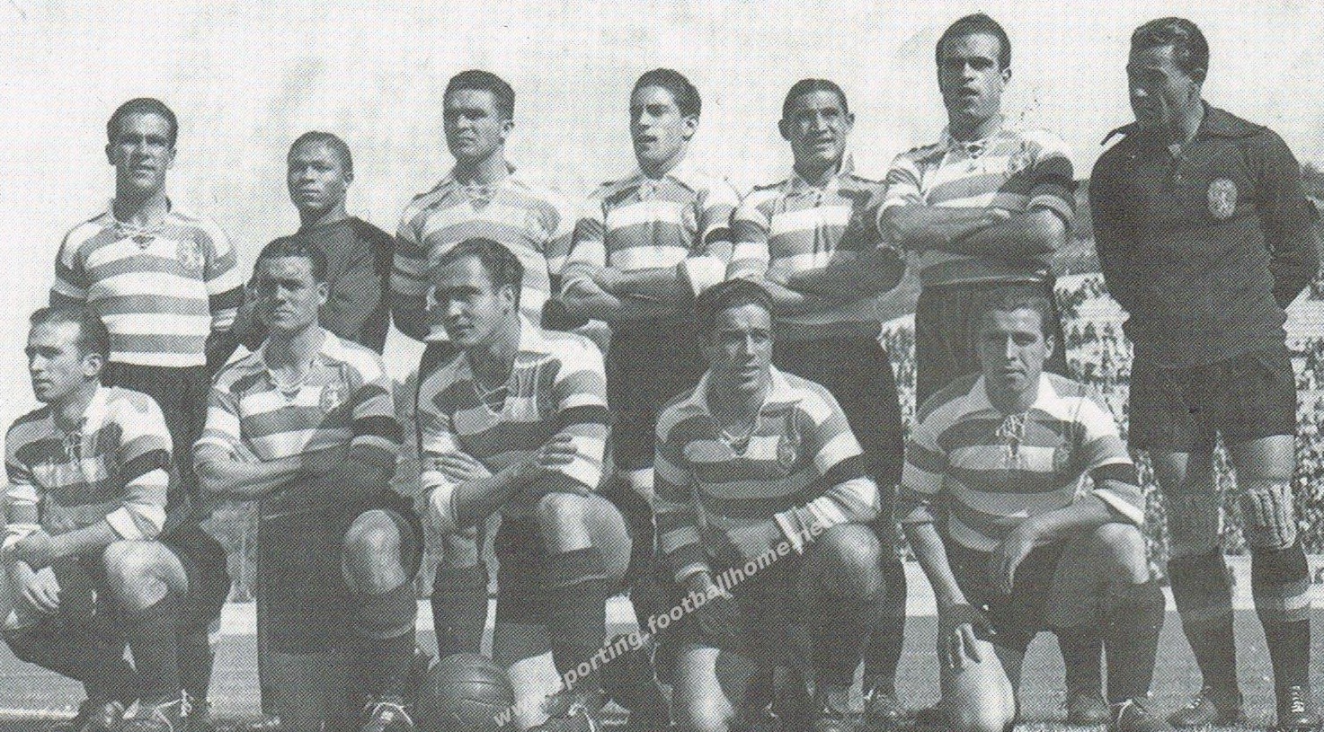 Azevedo; Manuel Marques e Álvaro Cardoso; Barrosa, Juvenal e Veríssimo; Armando Ferreira, Sidónio, Peyroteo, António Marques e Albano.