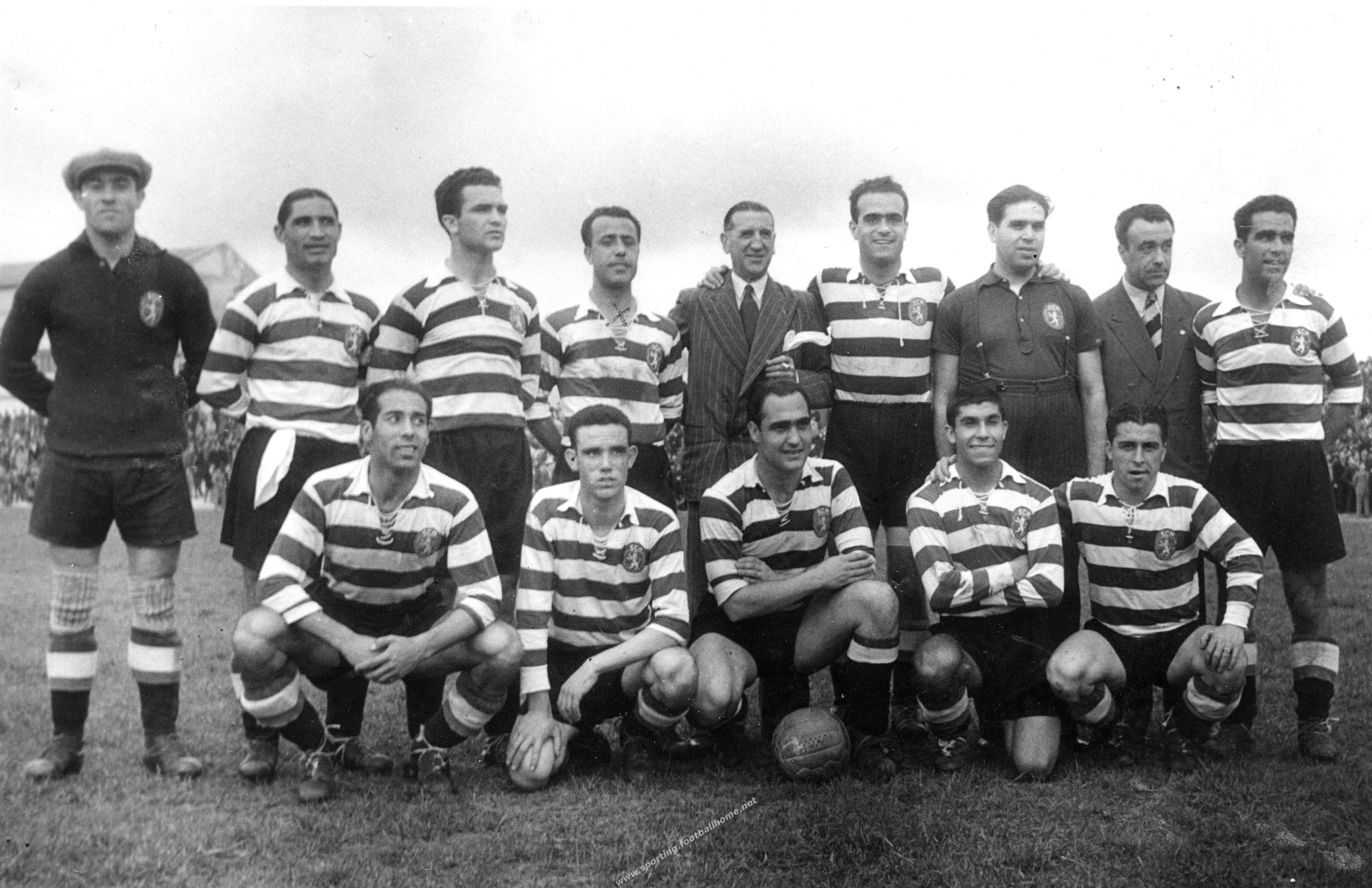 Azevedo; Álvaro Cardoso (cap) e Manecas; Veríssimo, Canário e Barrosa; Jesus Correia, Vasques, Peyroteo, Travassos e Albano.