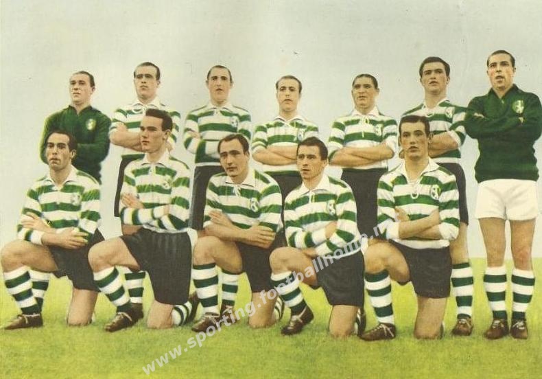 Em baixo: Jesus Correia, Vasques, Peyroteo, Albano e João Martins.