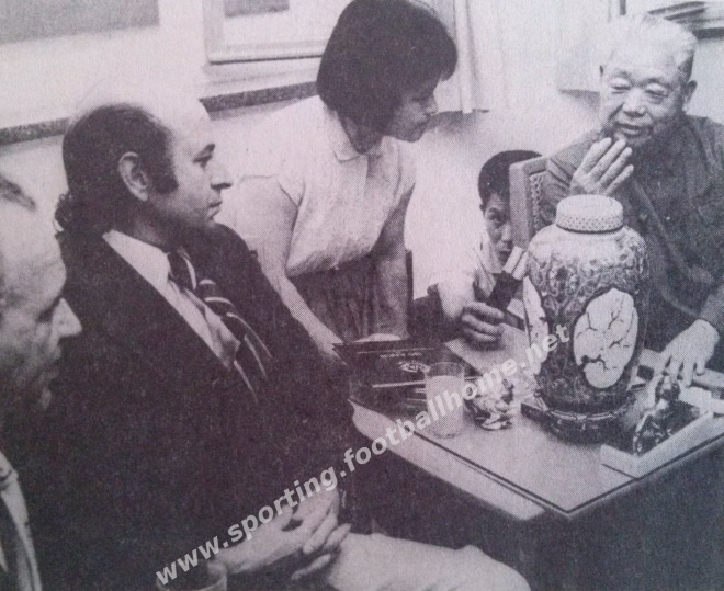 Durante a digressão à China e num dos banquetes de despedida, João Rocha entrega ao Marechal Tie Xie Lien um jarro em porcelana e um Leão em bronze.