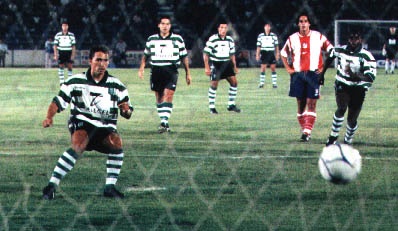 Momento em que Rui Jorge faz o golo do Sporting.