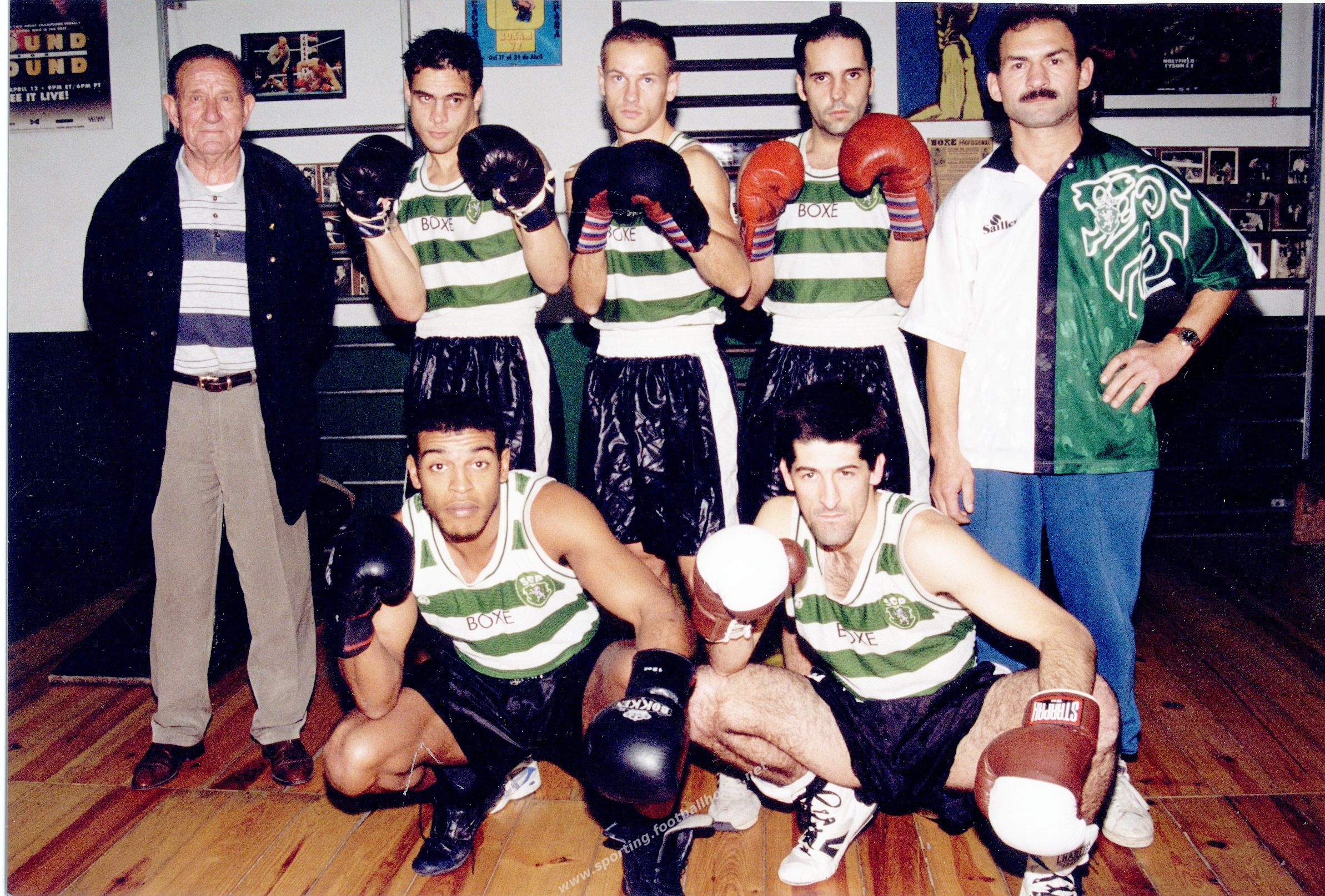Em cima, os treinadores Ricardo Ferraz e Victor Carvalho ladeiam três atletas. Em baixo Jorge Pina e Nuno Neves.