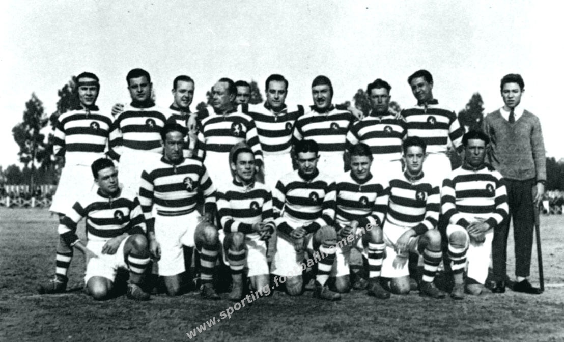 Primeiro jogo realizado com as camisolas às riscas por uma equipa do Sporting.
