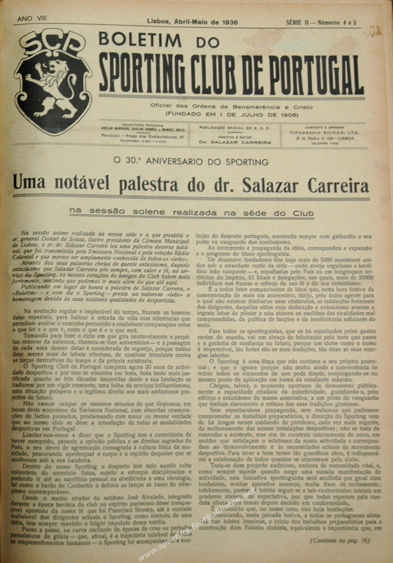 Boletim do Sporting de Abril e Maio de 1936.