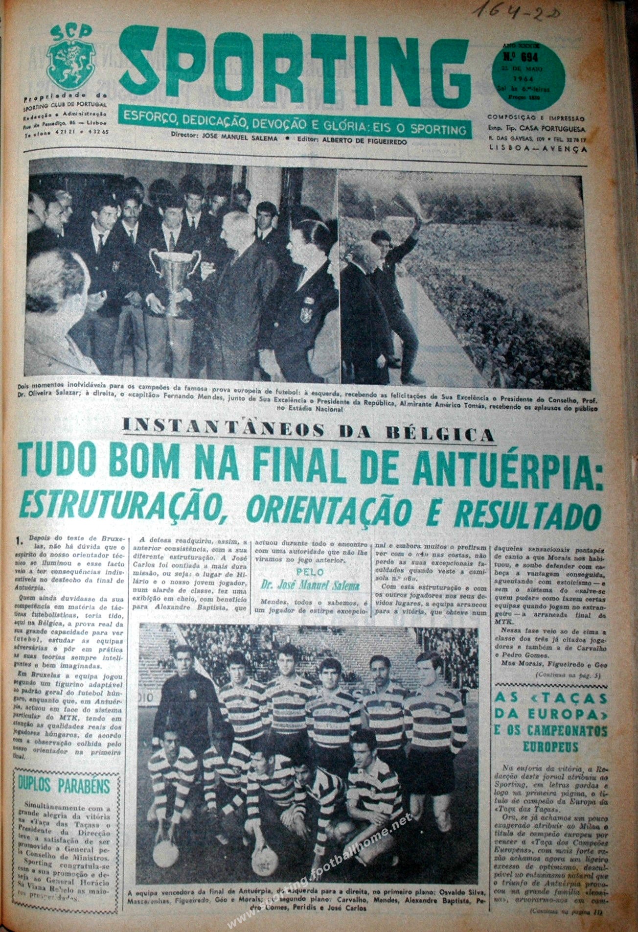 Regresso a Lisboa dos Heróis de Antuérpia e rescaldo de um dos maiores momentos de sempre do futebol Leonino, a Conquista da Taça das Taças de 1963/64.