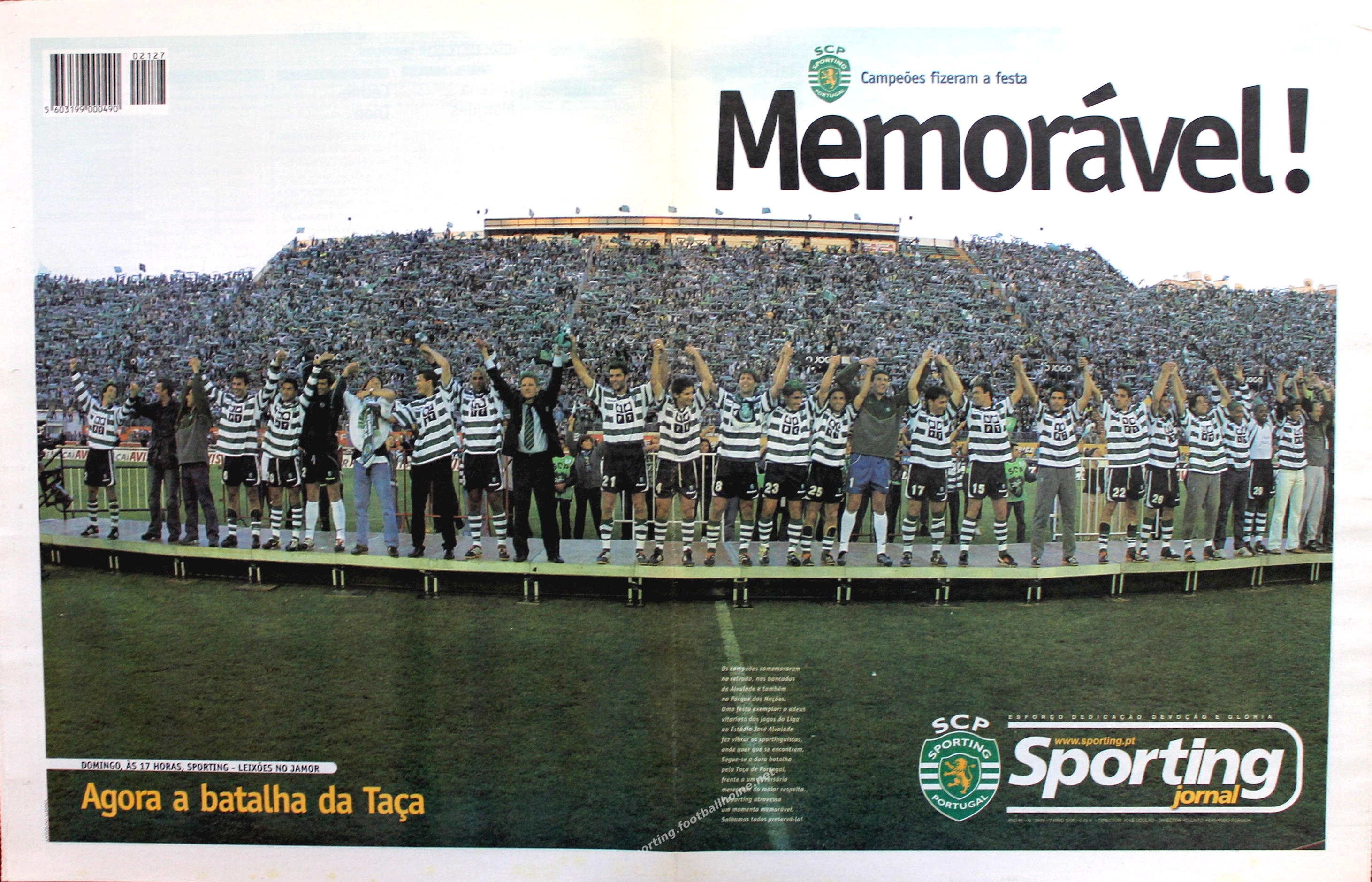Capa fantástica do Jornal Sporting sobre a festa do título de Campeão 2002/03 em Alvalade.