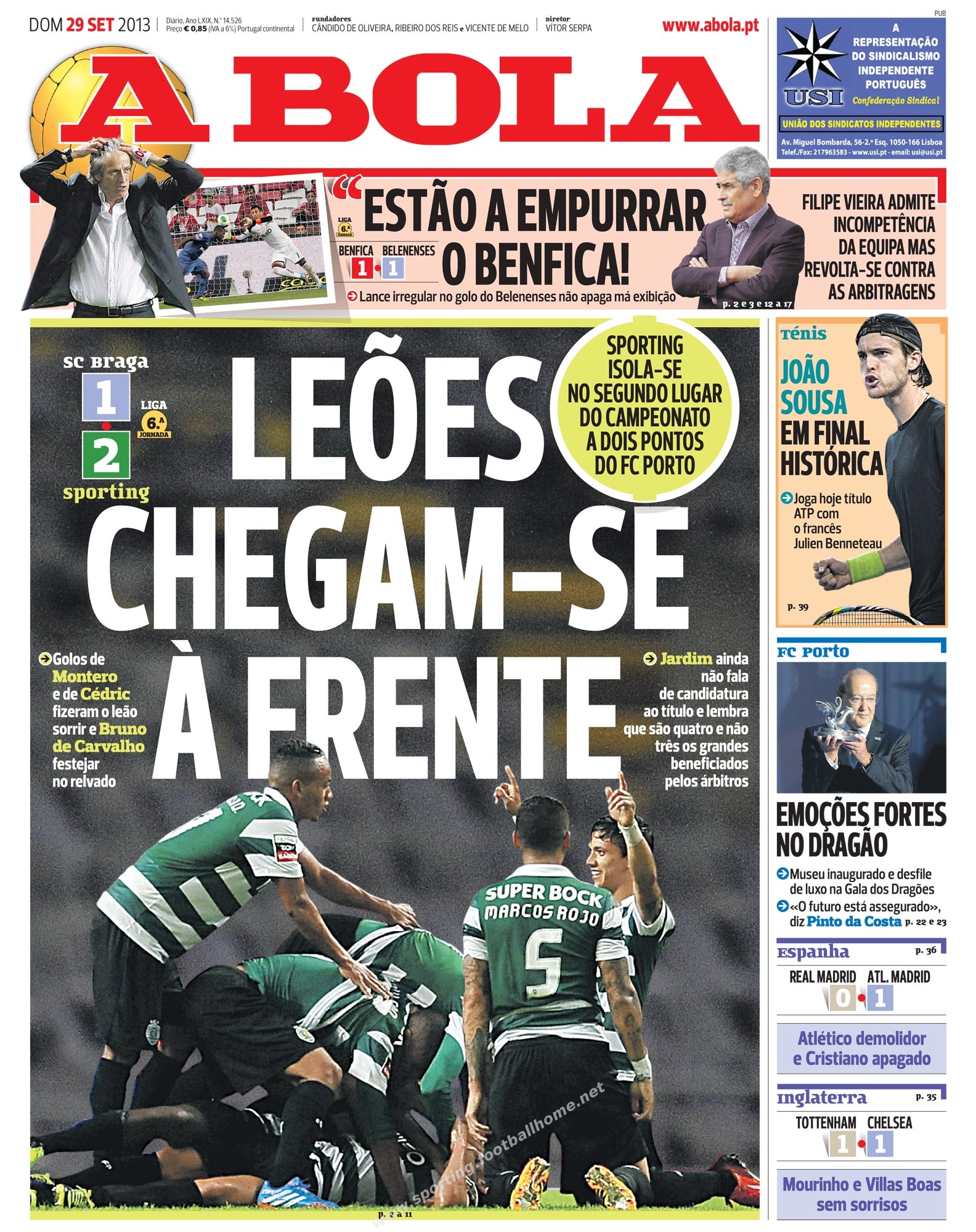 Vitória em Braga (2-1) arrancada a ferros e Sporting a isolar-se em 2º na classificação.
