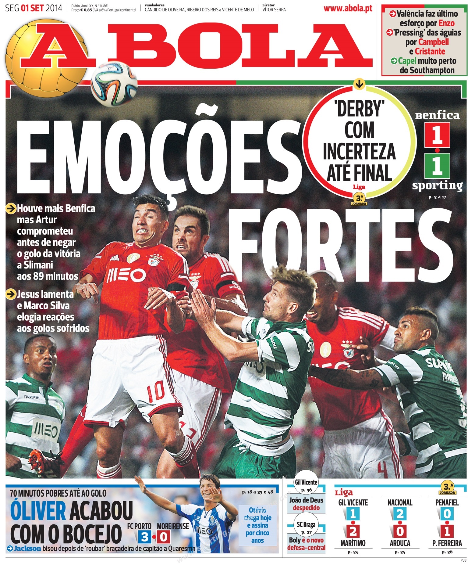 Empate na Luz (1-1) para o Campeonato.