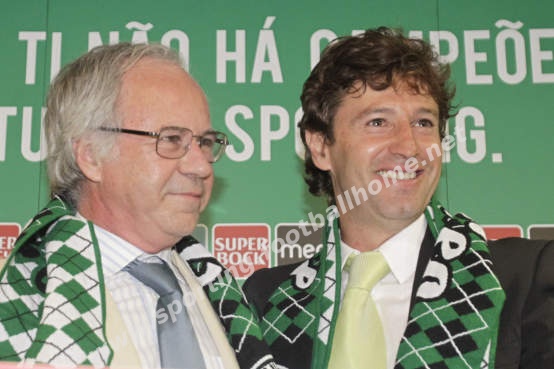 No dia da sua apresentação como novo treinador do Sporting ao lado de Godinho Lopes.