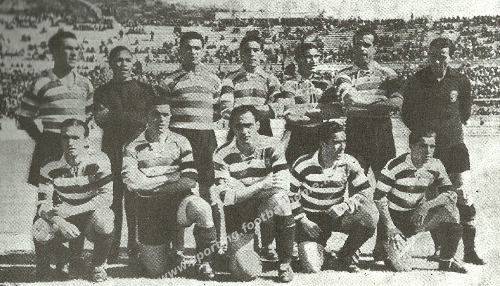 Azevedo; Manuel Marques e Álvaro Cardoso; Barrosa, Juvenal e Veríssimo; Armando Ferreira, Sidónio, Peyroteo, António Marques e Albano.
