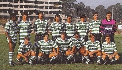 Em baixo da esquerda para a direita: Filipe, Litos, João Luís Esteves, Careca, Fernando Gomes e Lima.