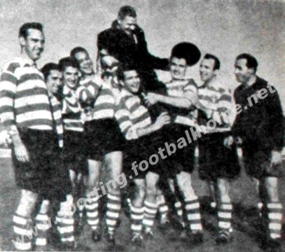 Logo após a vitória sobre o Estoril (5-3) que possibilitou a conquista de mais um Campeonato Nacional, os jogadores elevam o treinador Randolph Galloway.