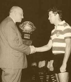 Capitão Fernando Mendes recebe taça de Campeão Nacional 1961-62.