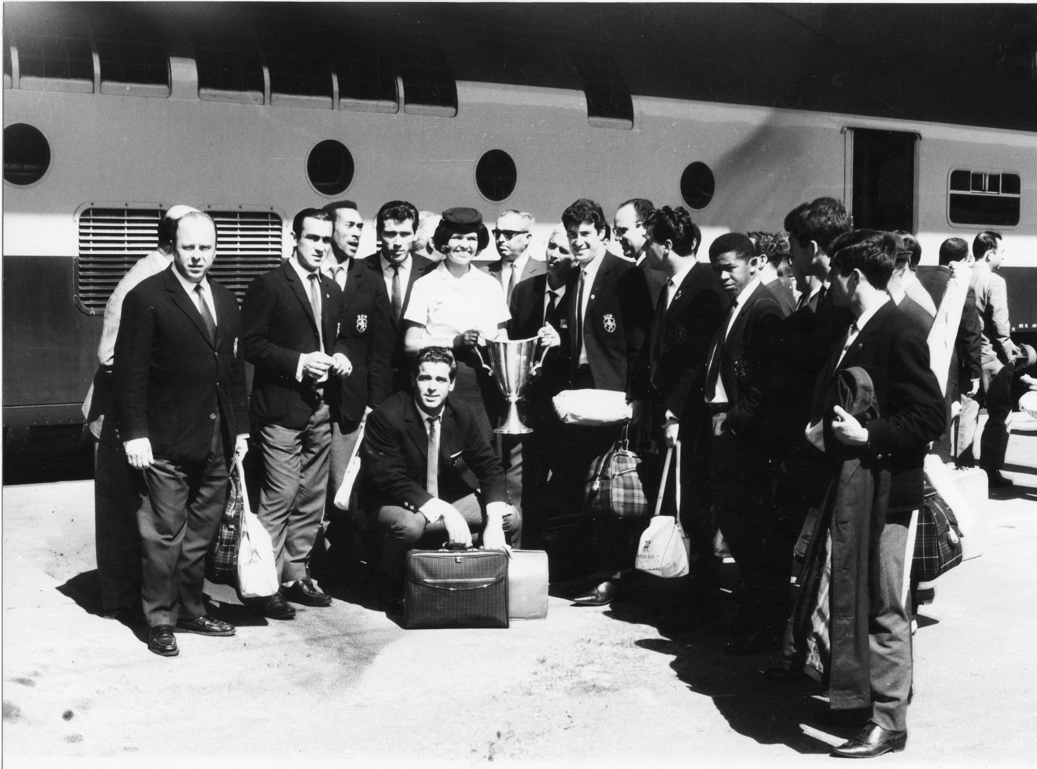 A comitiva leonina à espera do embarque para Lisboa.