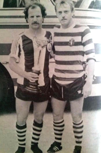 Aílton e Artur posam com a Taça à entrada dos balneários após a conquista da 10ª Taça de Portugal.