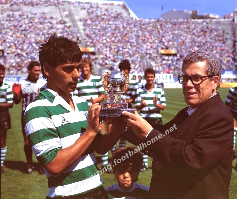 Manuel Fernandes recebe a 'Bola de Prata', troféu referente ao melhor marcador do Campeonato 85/86.