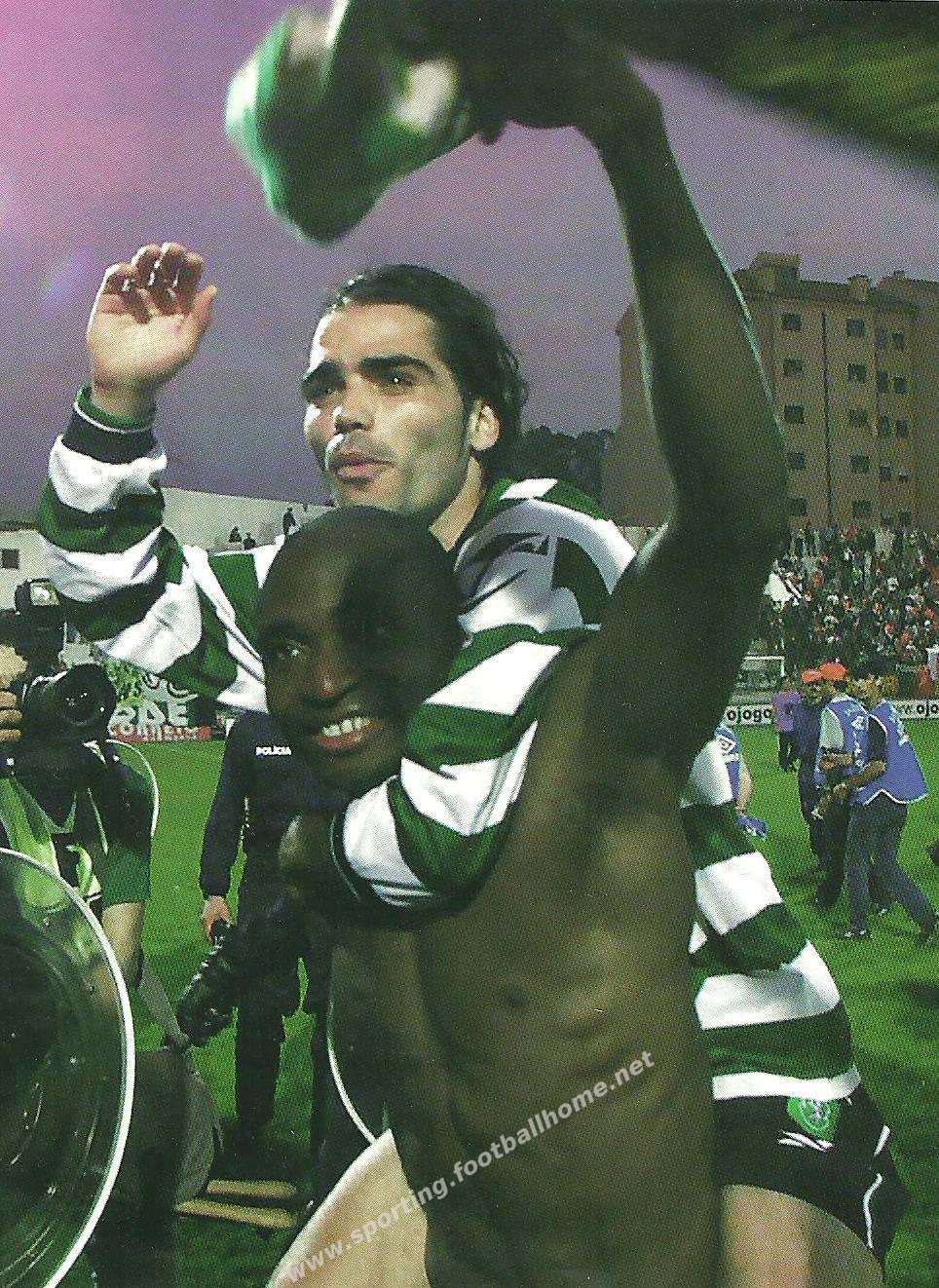 No final do jogo que 'matou o borrego', jogadores e adeptos leoninos fizeram a festa merecida