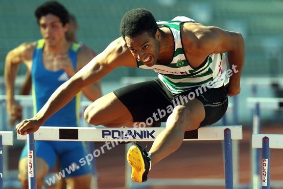 João Almeida numa prova de 110m barreiras.