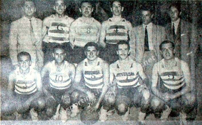 Em cima: Rogério Duarte (seccionista), Lenine, Leonel, Campos, Mário Lemos (treinador) e Cândido Silva (seccionista).