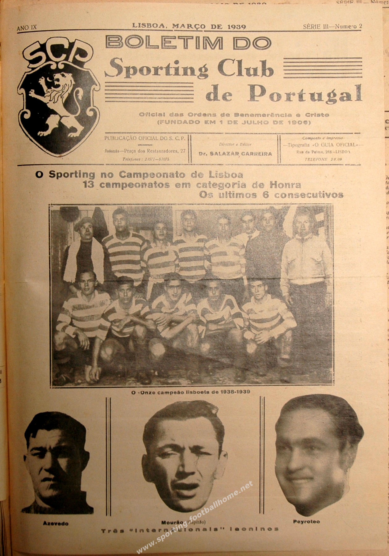 O Boletim do Sporting Clube de Portugal dava destaque aos 6 Campeonatos de Lisboa conquistados consecutivamente.