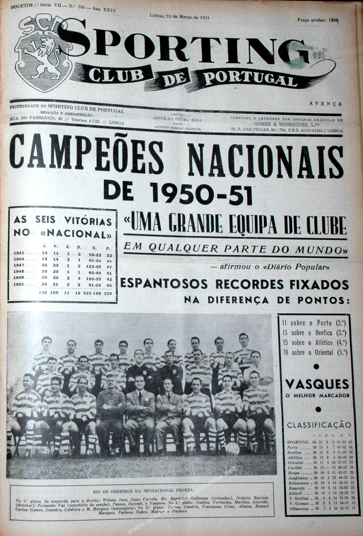 Destaque para os Campeões Nacionais 1950-51 e com vários records alcançados!!
