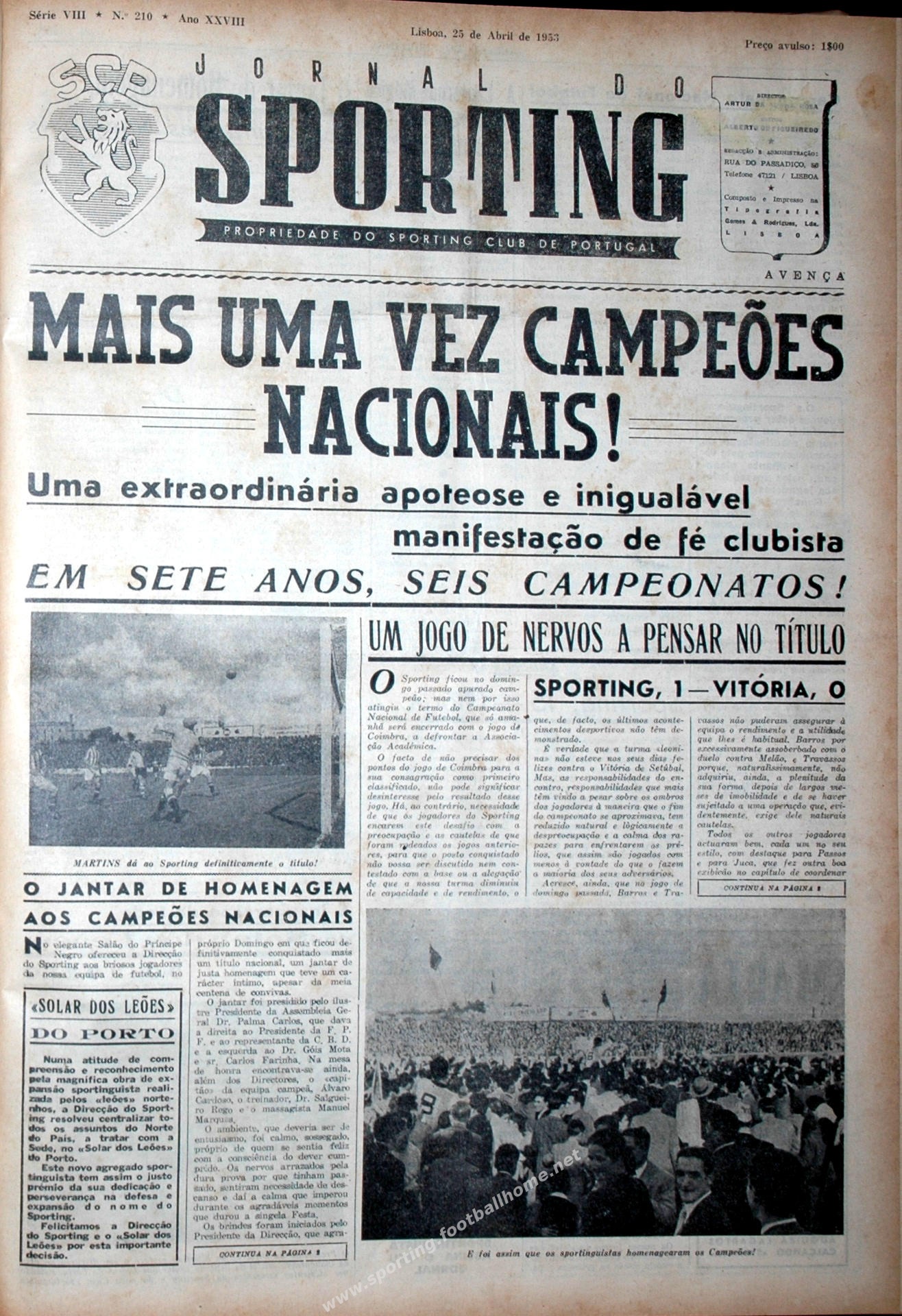 Vitória sobre o Setúbal na penúltima jornada e o Sporting tornava-se Tri-Campeão Nacional (1952/53). Era também o sexto Campeonato em sete.