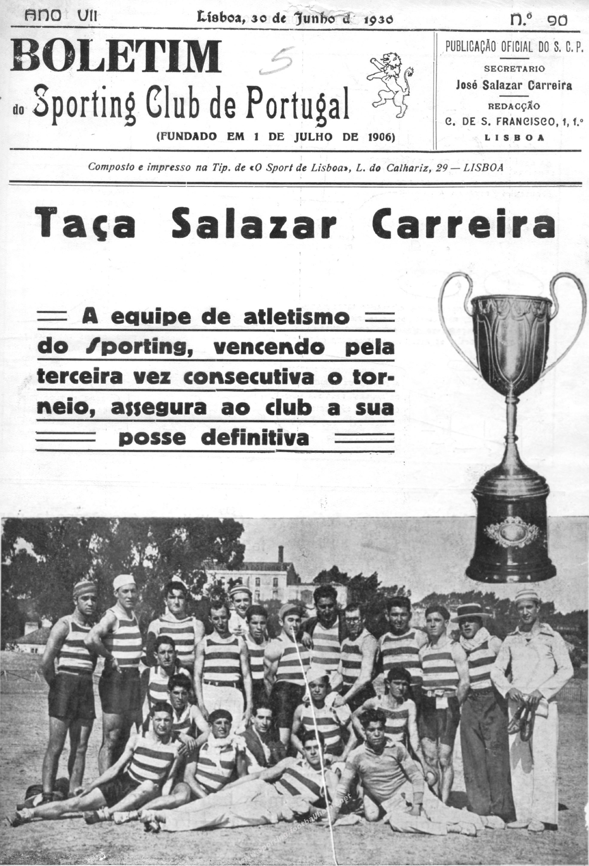 A equipa de atletismo do Sporting vencia pela 3ª vez consecutiva a Taça Salazar Carreira.