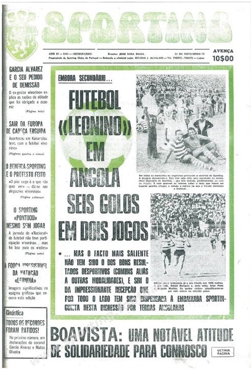 Destaque do Jornal Sporting para a digressão do Sporting a Angola competindo em várias modalidades.