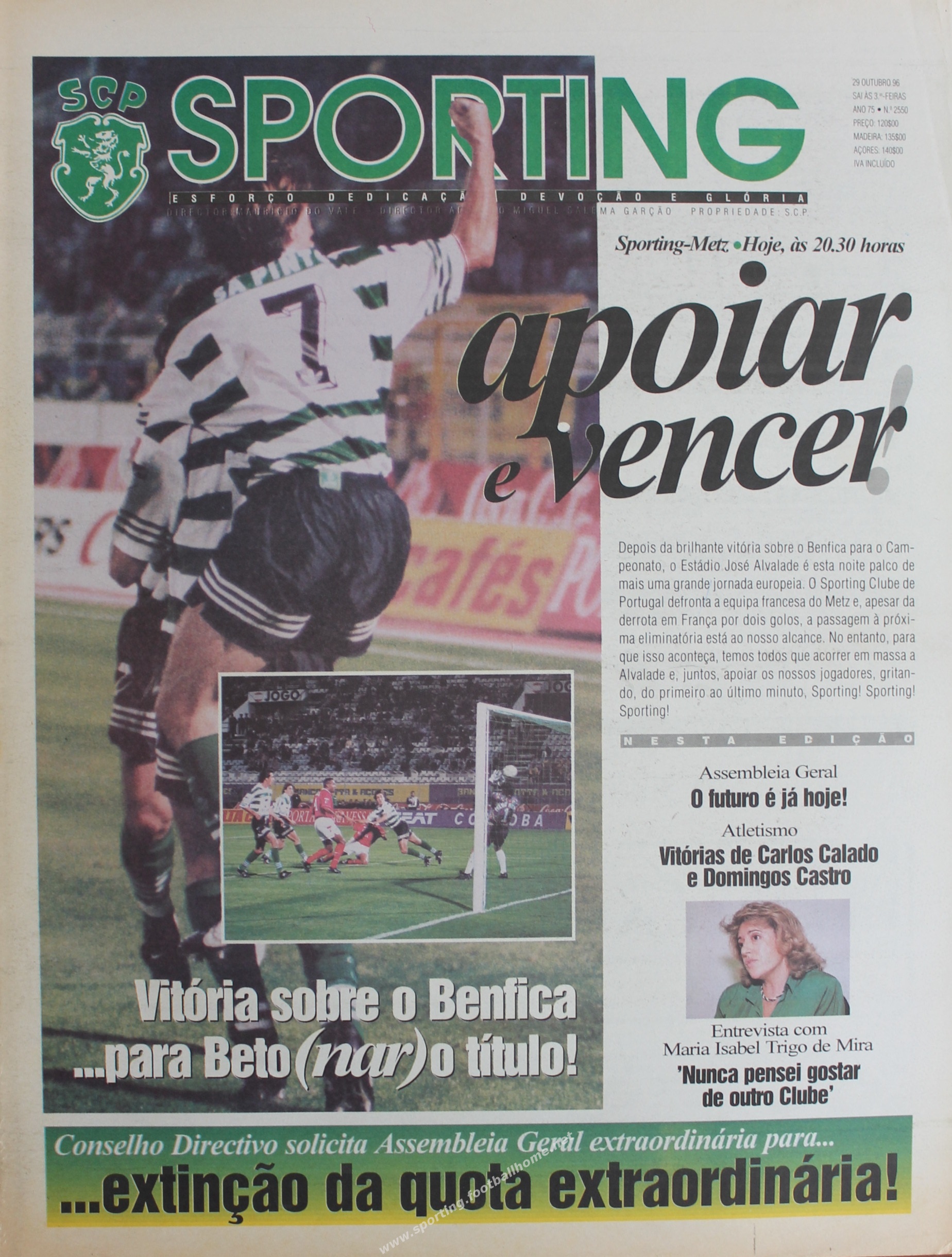 O Derby de Alvalade com o Benfica (1-0) para o Campeonato decidido com um golo de Beto, que depois de se ter estreado com o Metz para a Taça UEFA e depois para o Campeonato em Guimarães, realizava o seu primeiro jogo em Alvalade.