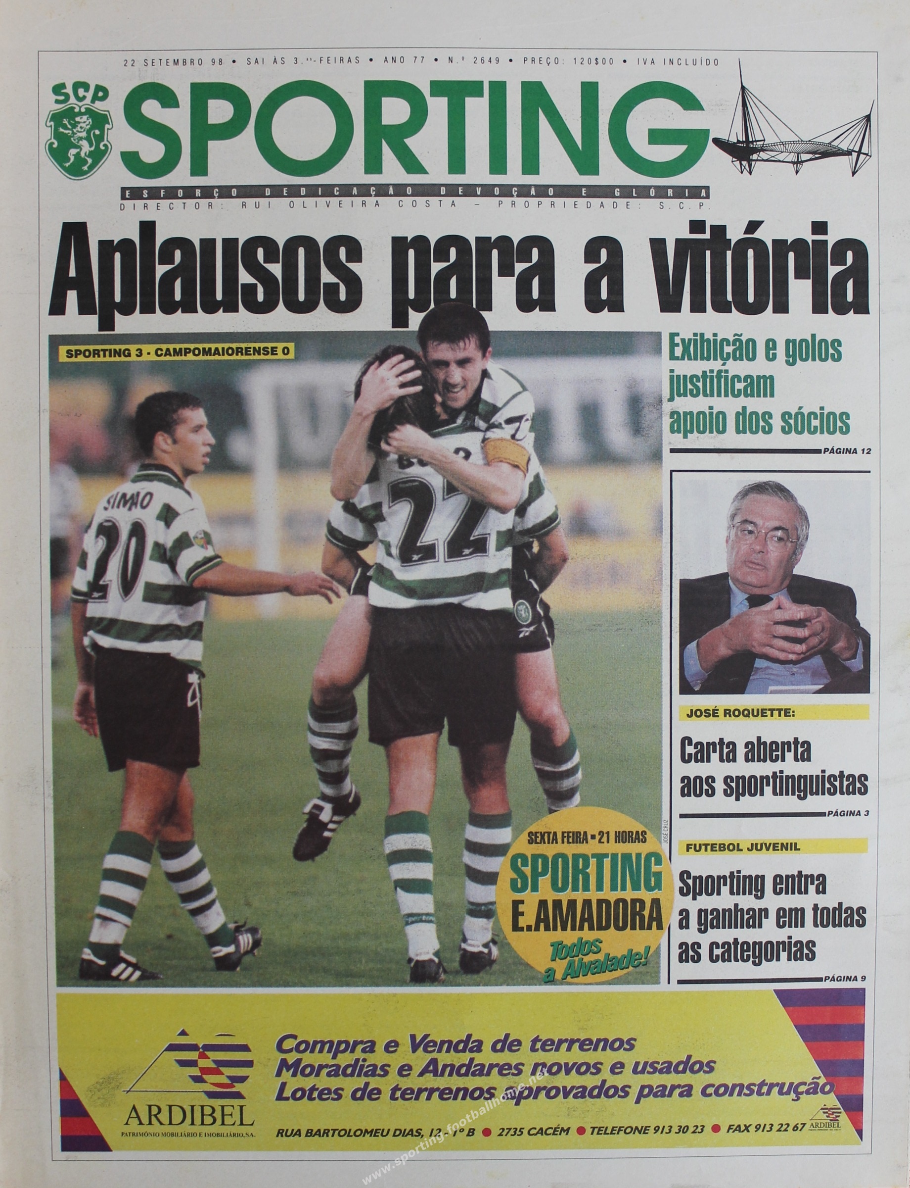 Boa exibição e vitória folgada (3-0) frente ao Campomaiorense para o Campeonato.