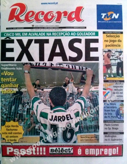 Milhares em Alvalade recebem o fenómeno Jardel, nova contratação para 2001/02.